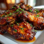 Crispy baked sweet chili wings coated in a sticky, flavorful sauce make for an irresistible appetizer or snack that’s easy to prepare and perfect for any occasion.