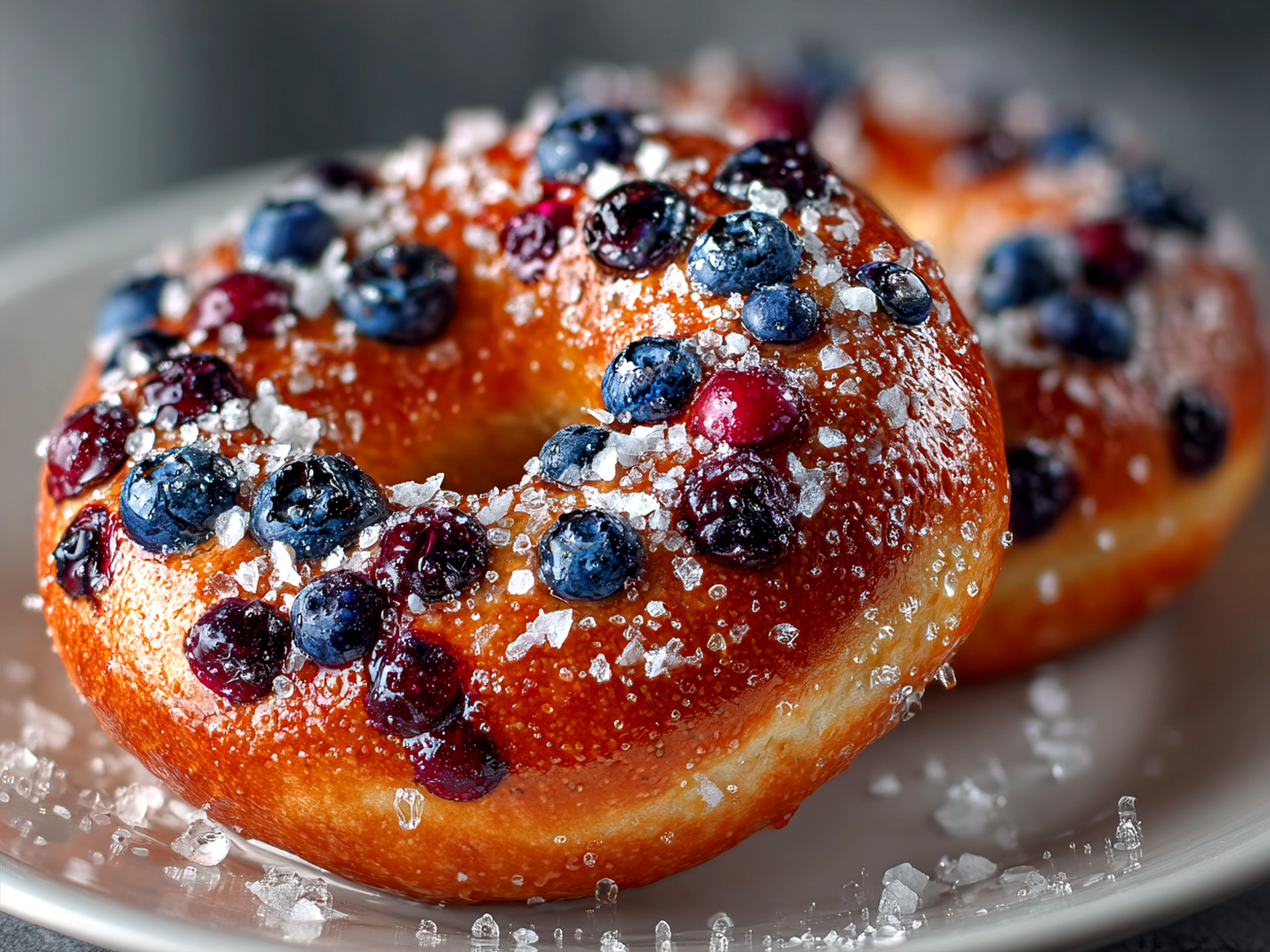 Delight in these homemade blueberry bagels, featuring a chewy texture and bursts of fresh blueberries in every bite—perfect for a wholesome breakfast or snack.