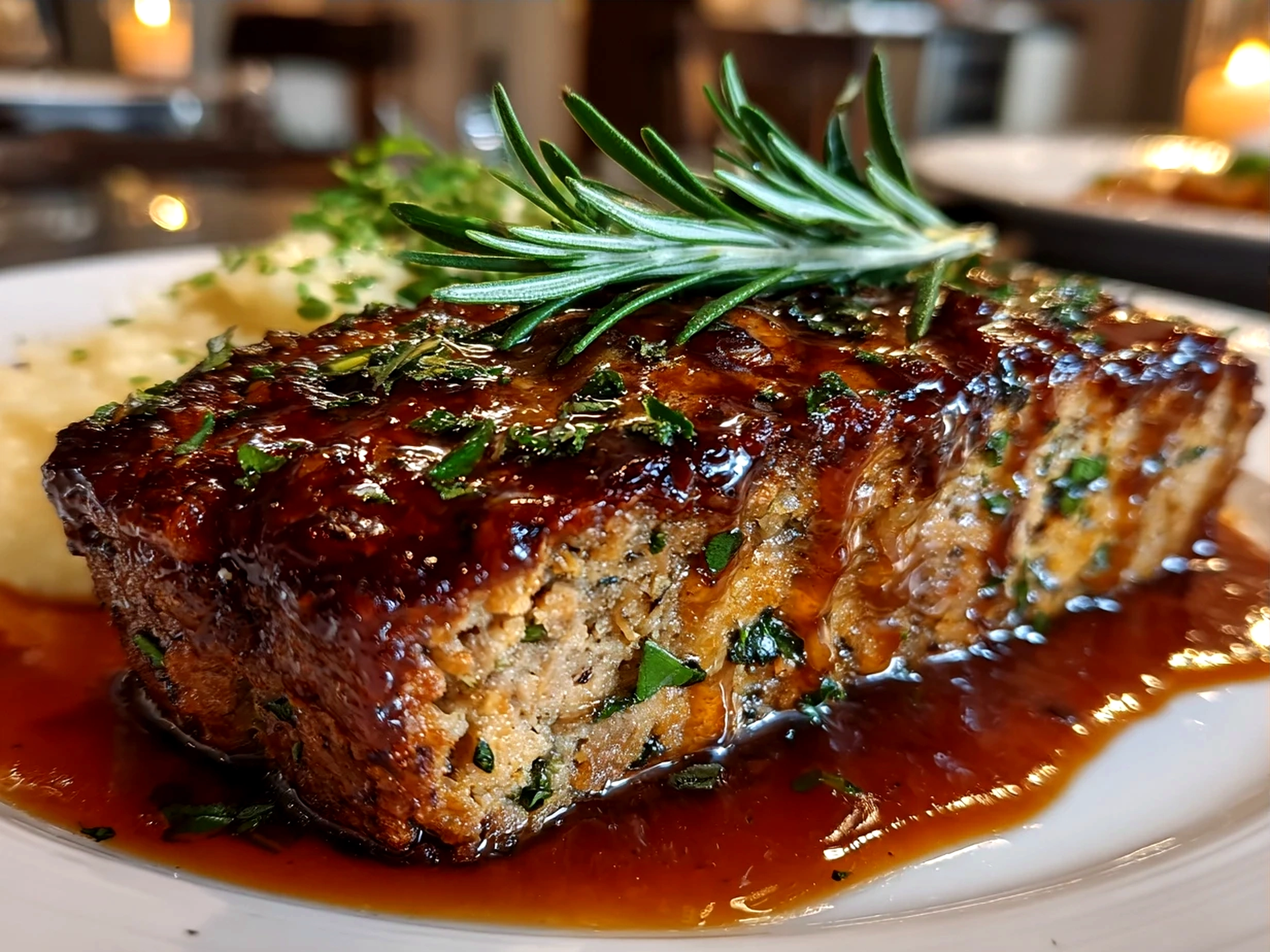 A hearty and comforting classic meatloaf made with ground beef, herbs, and a tangy tomato glaze, perfect for a family dinner.