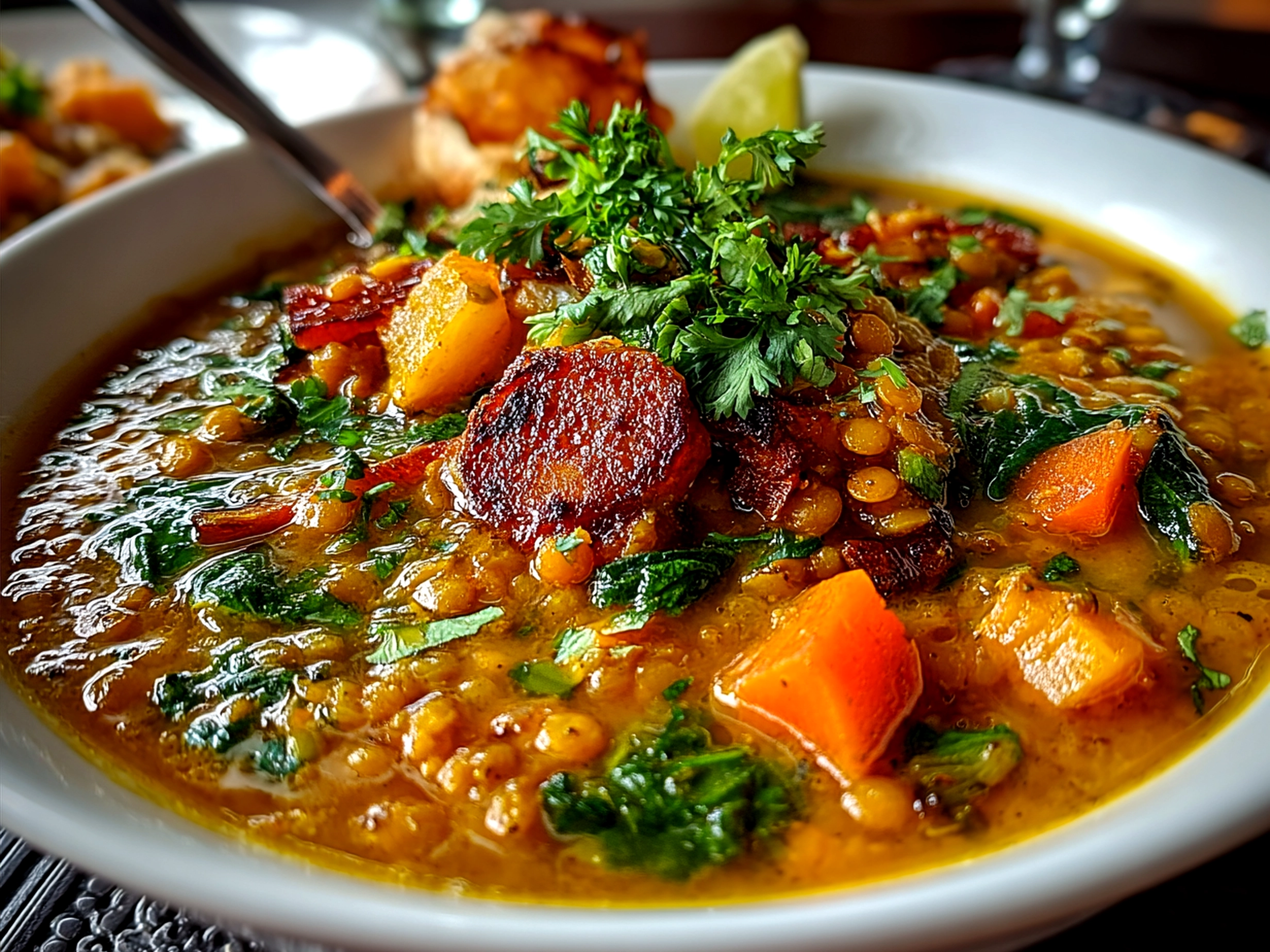 A creamy and flavorful coconut curry lentil soup that combines aromatic spices with wholesome ingredients for a comforting and nutritious meal.
