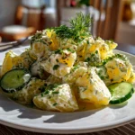 This salad is ideal for picnics, potlucks, or casual family dinners. Its fresh and creamy vibe makes it a refreshing cucumber salad with potatoes that feels right at home during warmer months but also adds brightness to winter meals.