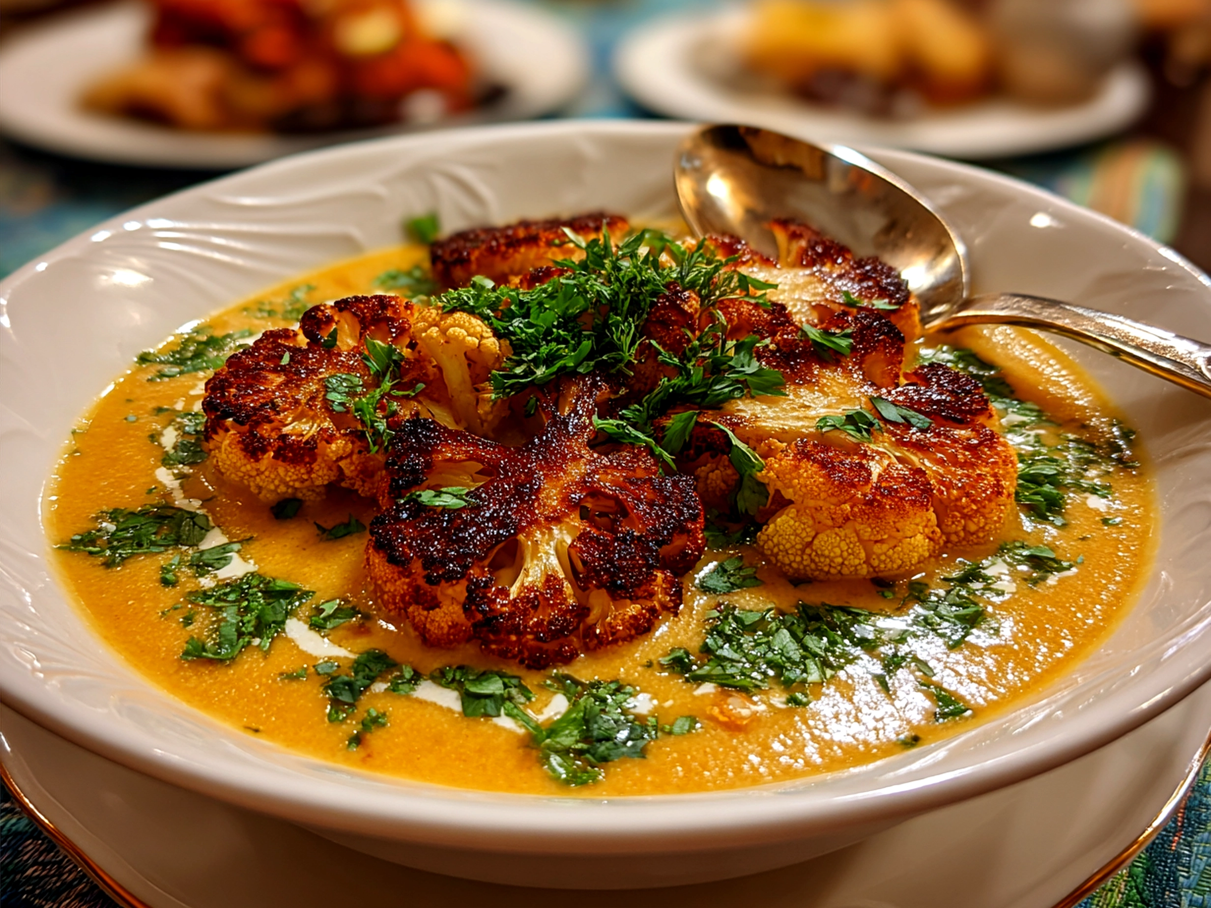 This creamy roasted cauliflower soup offers a comforting and healthy meal, blending tender roasted cauliflower with savory spices for a rich, velvety texture.